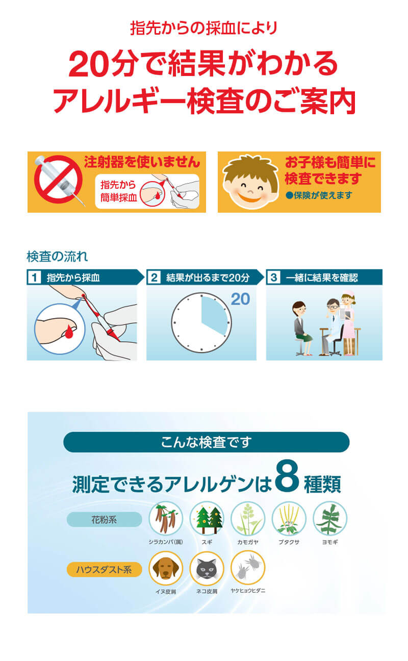 スギ花粉症やダニアレルギーの体質改善を目的とした免疫療法を行っています。